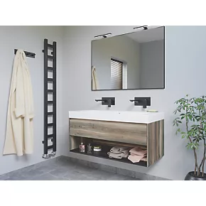 Chunky, square profile heated towel rail. Perfect solution for limited wall space due to its very tall, narrow shape. Equally spaced bars allow for towels to be rolled and inserted into, or hung over, every bar. Can also be fitted as dual fuel, whereby it can run on central heating in winter and as electric in summer (simply add a Terma heating element and the Terma integrated valve with immersion tube). Suggest 3 x Axis corner valves to fit product if pipework extrudes from wall.