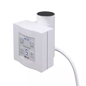 Designed to work in combination with the TS1 element probe to provide a fully functioning heating element (probe sold separately). Control via smartphone or tablet with the Terma BLUE-Line app. Features 7-day timer, 2hr drying function, frost and overheating protection.