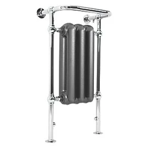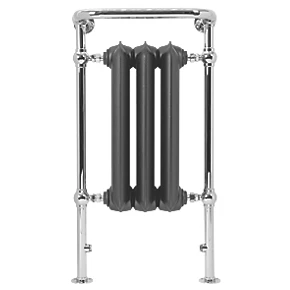 Traditional floor and wall-mounted towel rail for a period style bathroom. The centre is made of 3 manually crafted cast iron sections with a steel profile surround in an elegant chrome finish. Steel frame makes it perfect for hanging and drying towels.