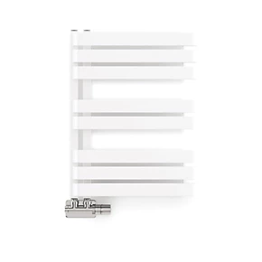 Designed with large flat bars which sweep forward and then bend backwards on themselves to create a towel rail which is only mounted to the wall on one side, leaving the other side open and free for easily hanging towels on. Can be mounted either way up as it has symmerical bars top and bottom. Large surface area for a higher heat output. Can also be fitted as dual fuel. Requires a Terma heating element and the Terma Integrated Valve with Immersion Tube (no T-piece required) to easily install as dual fuel.