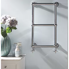 Elegant traditional style designer towel radiator in highly polished chrome. A luxurious addition to any bathroom.