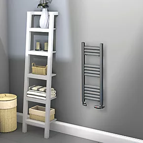 Designer aluminium towel radiator which adds a modern finishing touch to any bathroom. Corrosion-resistant with a great heat output.