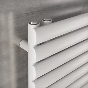Designer towel radiator with a stylish and modern oval panel design. Steel construction with a high quality pretreatment and powder-coated finish.